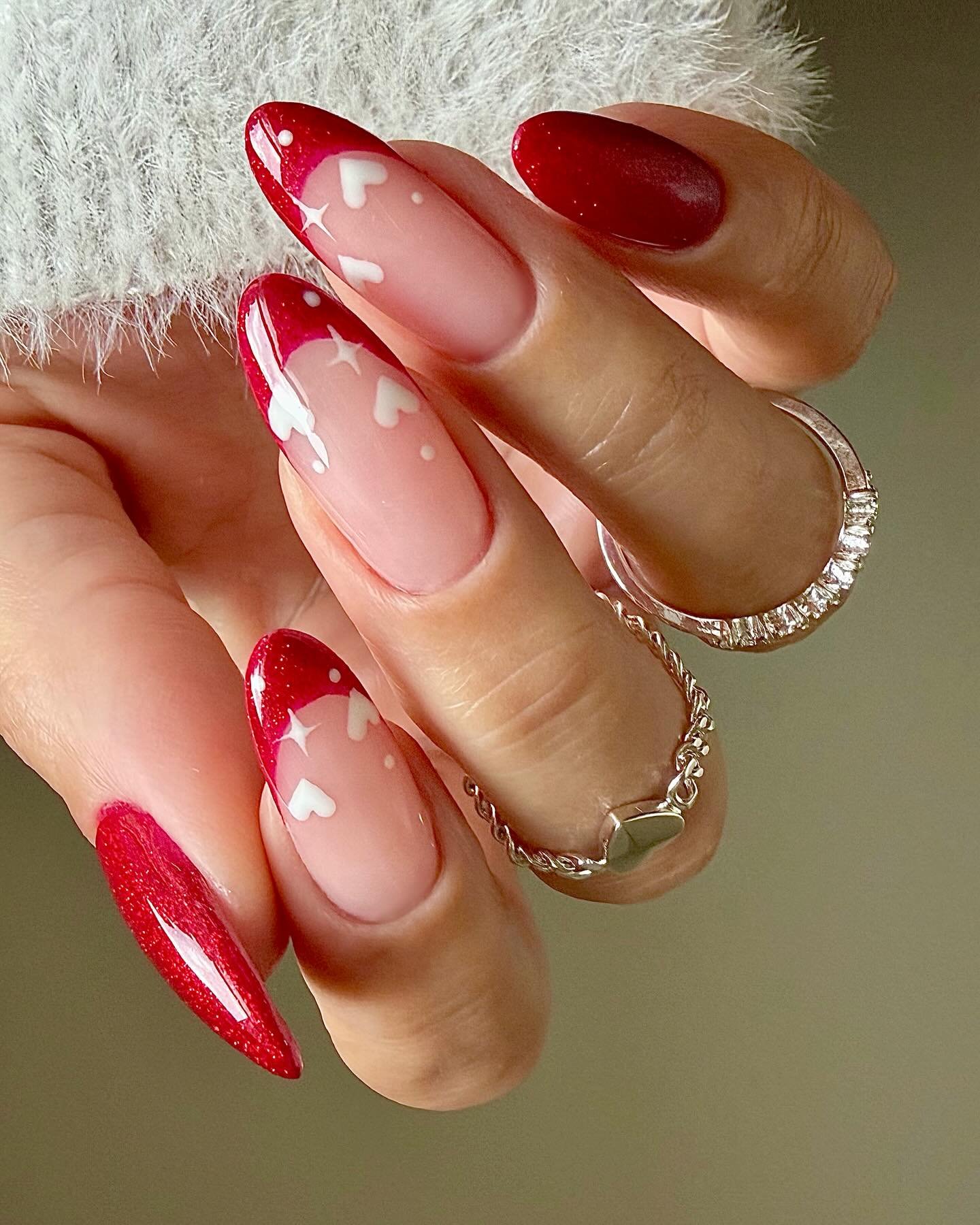 أما بالنسبة لمن يشعرن بالملل من تكرار اللون الأحمر، فإن موضة 2026 تفتح الباب أمام تدرجات الأزرق الشتوي البارد ونقاط البولكا التي تجمع بين الأحمر والأبيض أو حتى الأسود، مما يخلق توازناً بصرياً ممتعاً ومرحاً في آن واحد. وفي المقابل، لا يمكن إغفال محبات البساطة والهدوء، حيث تظل ألوان “النيود” حاضرة بقوة، مزينة بملصقات قلوب سوداء صغيرة ورقيقة، لتقدم حلاً مثالياً يجمع بين الأناقة والعملية، ويتناسب مع مختلف خيارات الملابس مهما كانت ألوانها.