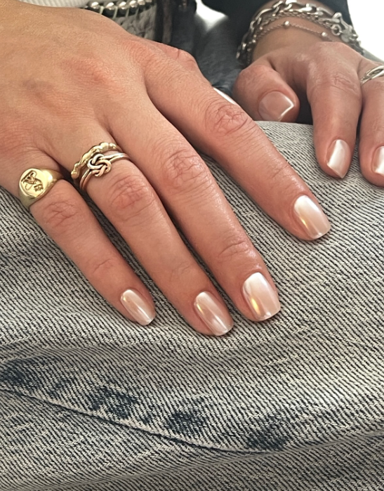 لعشاق اللمعان الراقي، يبرز الكروم المصقول كخيار لا يمكن تجاهله. خاصة في درجات الذهبي الفاتح والكريمي، حيث تعكس الأظافر الضوء بنعومة فائقة. هذه الصيحة تليق بشكل استثنائي بالأظافر القصيرة، وتوفر توازناً مثالياً بين العصرية والرقي.