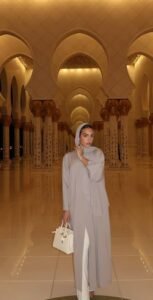 وظهرت «جورجينا» من داخل مسجد بعباءة وحجاب في مسجد الشيخ زايد بالعاصمة الإماراتية أبوظبي، وذلك بعد أيام من وضعها لوشم في يدها وكتبت باللغة العربية «وابعد عنا الشر آمين»، مما أثارت الدهشة وحازت على الإعجاب وتفاعل كبير من محبيها.