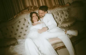 وأطلت الفنانة رنا رئيس، وهي مرتدية الفستان الأبيض بتصميم جذاب وفريد، واعتمدت على المكياج الهادئ الذي زاد من جمالها وتألقها، ونشرت عدة صور من حفل الزفاف، بتعليق “تزوجت من حب عمري”.