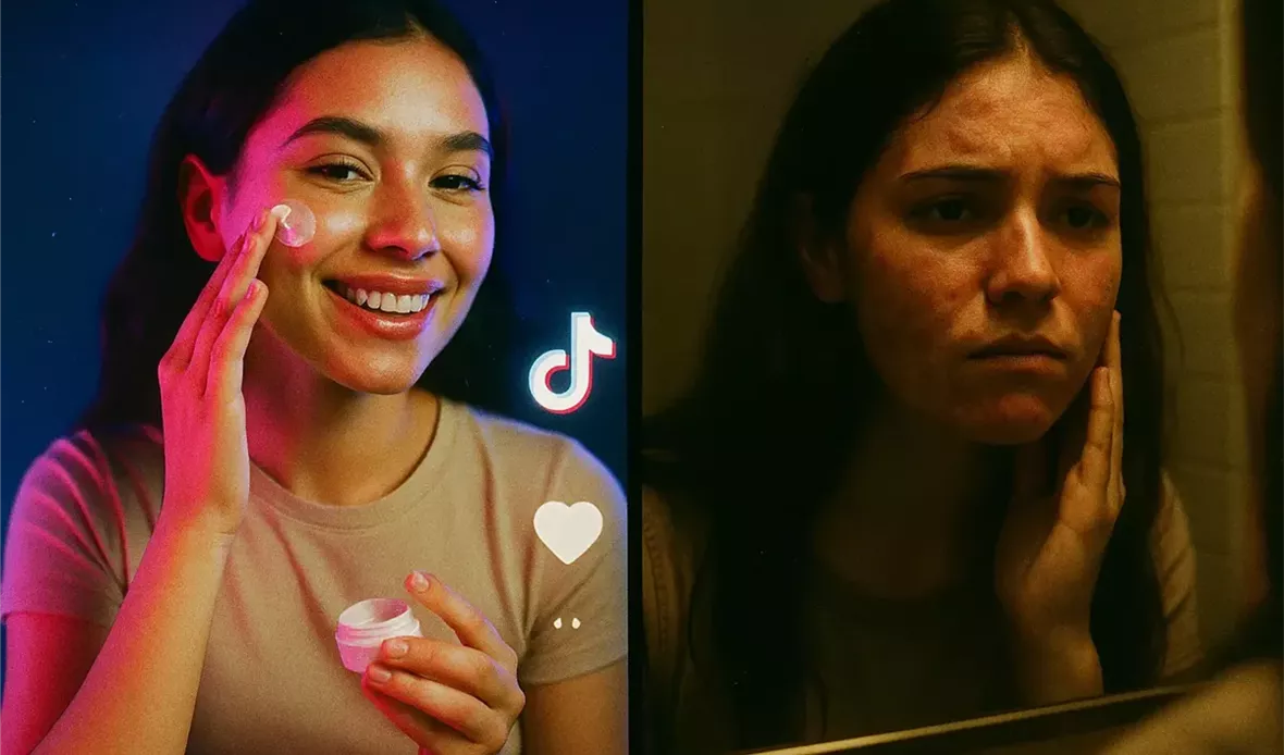 بعد ان انتشر روتين تيك توك للعناية بالبشرة وتصدر التريند، أصبحت منصة “تيك توك” وجهة رئيسية للباحثات عن نصائح ووصفات العناية بالبشرة، ولكن وراء هذه النصائح غير الموثوقة تكمن مخاطر صحية جسيمة. فقد كشفت دراسة حديثة أجراها باحثون في جامعة “نورث وسترن” الأمريكية أن الفتيات بين سن 7 و18 عامًا يستخدمن في المتوسط 6 منتجات تجميلية يوميًا، وهو ما قد يصل في بعض الحالات إلى 12 منتجًا، مما يشكل خطرًا كبيرًا على صحة البشرة.