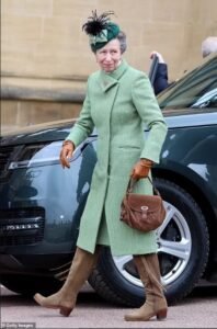 أما الأميرة آن، فاختارت معطفًا منقوشًا باللون الأخضر النعناعي، مصممًا بدقة، وكان المعطف، الذي كان عنصرًا أساسيًا في خزانة ملابس آن منذ عام 2015 على الأقل، دليلاً على أسلوبها الدائم وميلها إلى إعادة ارتداء القطع ذات المعنى.