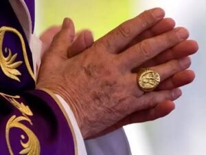 توفي أمس الاثنين، البابا فرنسيس بابا الفاتيكان عن عمر ناهز الـ88 عامًا، وعقب وفاة “البابا” اتجهت الأنظار إلى طقس غريب، وهو تدمير “خاتم الصياد” الذي كان يرتديه البابا فرنسيس الراحل.