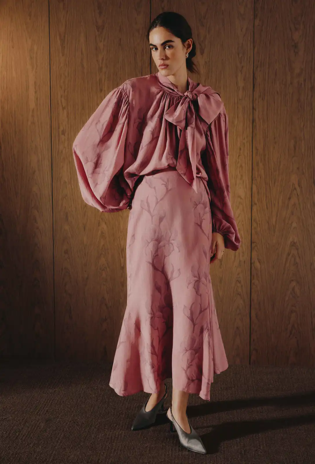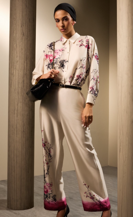 في خطوة تؤكد عالمية “التريند” الرمضاني، قدمت علامة & Other Stories تشكيلتها برؤية تمزج النعومة بالثقة، حيث برزت الفساتين الانسيابية وقطع “البليزر” المحددة بلمسات أنثوية. وتلاعبت العلامة بلوحة ألوان غنية تدرجت بين الأخضر الزيتي والذهبي، وصولاً إلى الفوشيا والبنفسجي، مستخدمةً الساتان كخامة أساسية تضفي لمعاناً خافتاً يناسب أجواء الشهر.