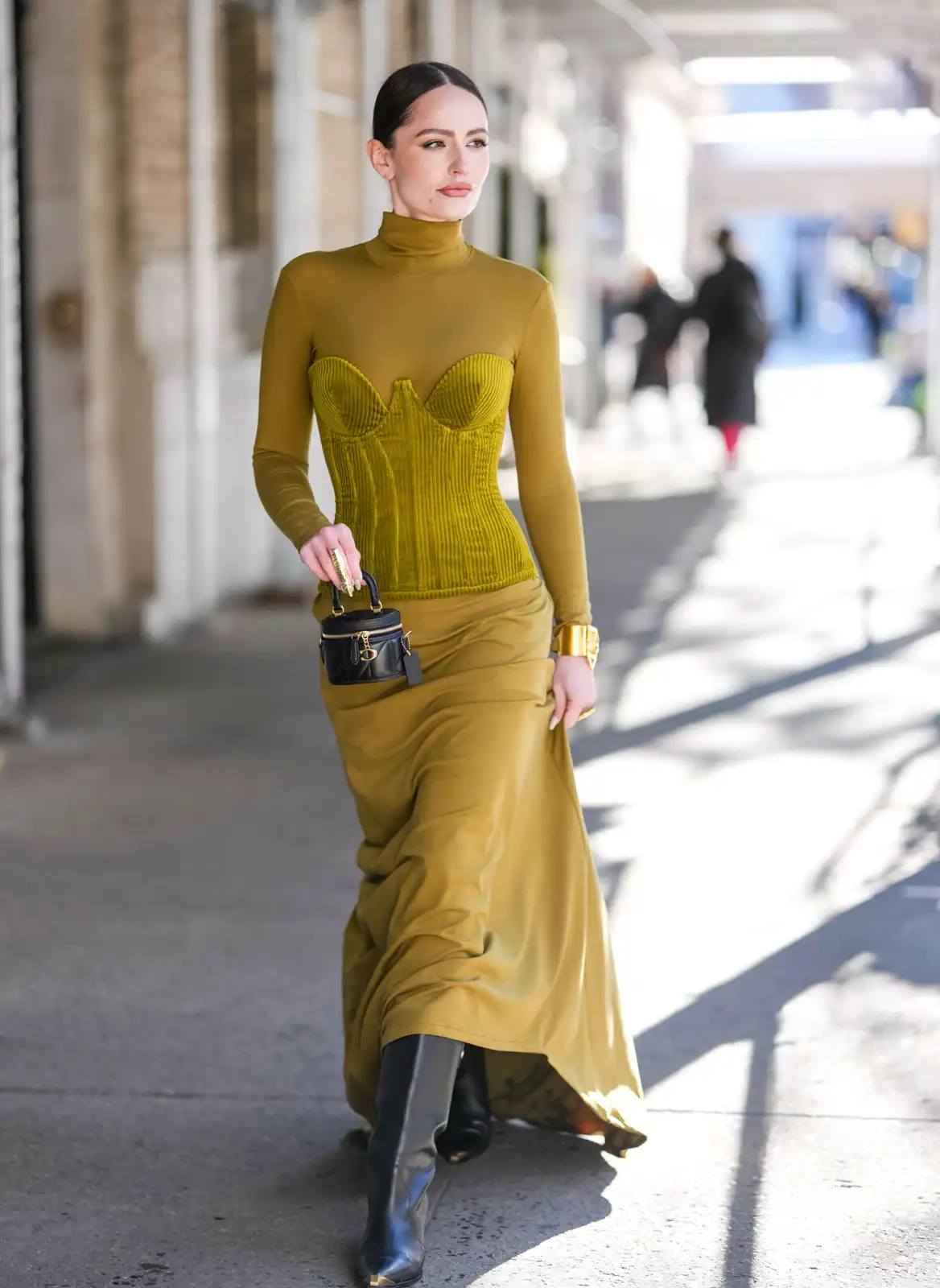في عودة للجذور، يستلهم الأسلوب الفيكتوري فخامته من العصور الكلاسيكية لكن بروح اليوم. تعتمد هذه الإطلالة على خلط الخامات الفاخرة مثل المخمل والساتان بألوان ناعمة كالأخضر الباستيل أو الوردي العتيق. ارتداء كورسيه بدرجة لونية متقاربة مع فستان طويل وانسيابي يخلق حالة من التناغم البصري المريح. ورغم كلاسيكية اللوك، إلا أن البوت العالي يتدخل ليمنح الإطلالة “القفلة” العصرية المطلوبة، مما يجعلها مثالية لسهرات الشتاء الفاخرة.